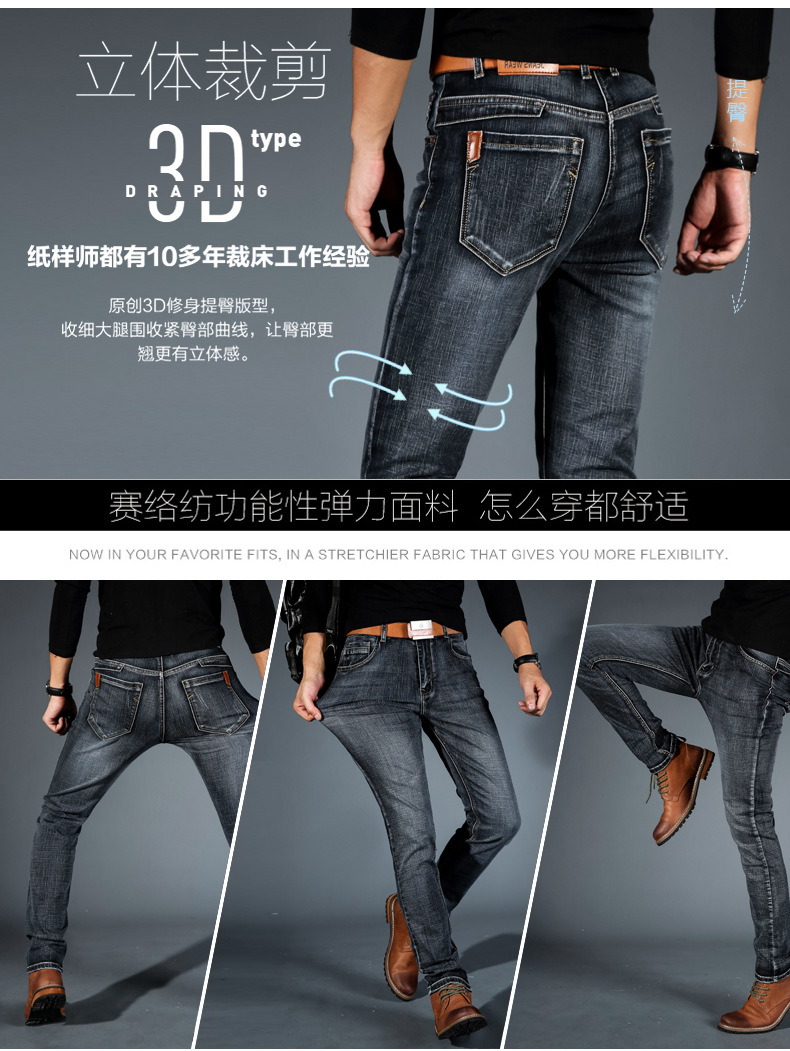 2019 Summer New Youth Trend Fashion Trendy Men's All-match Slim-fit Men's Jeans Straight-leg Trousers