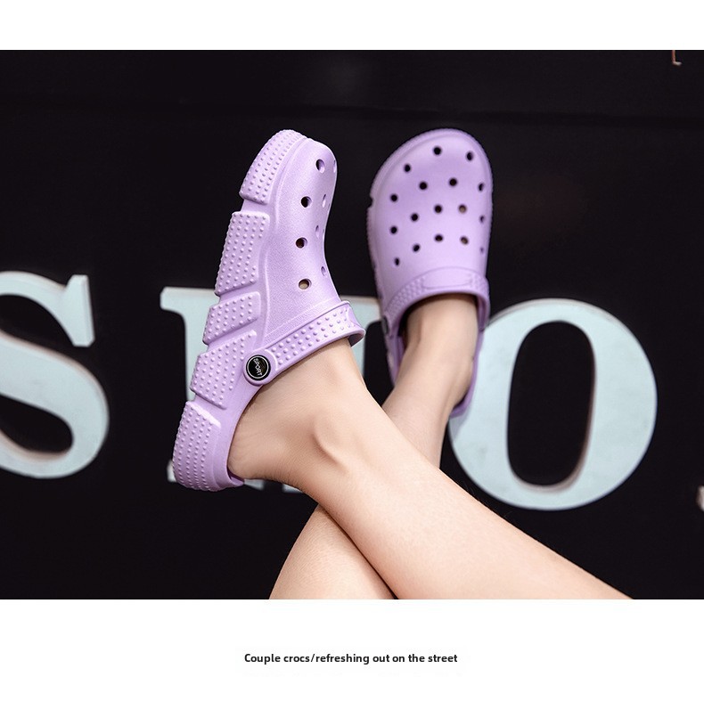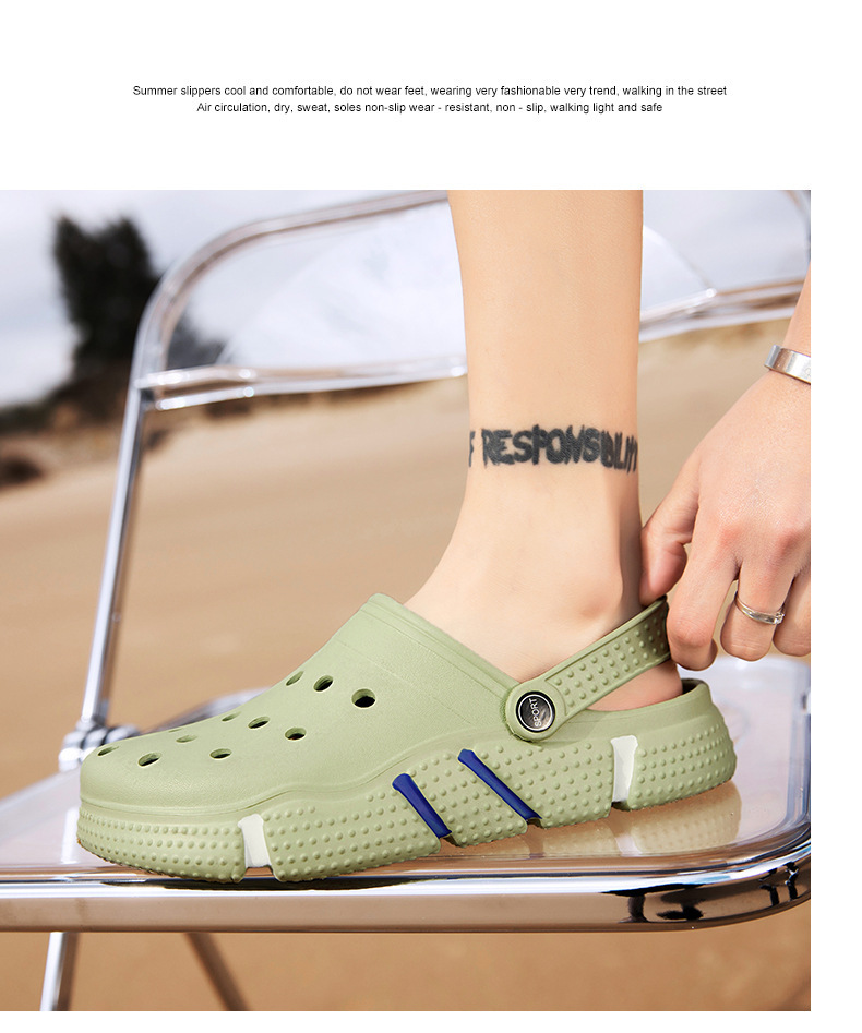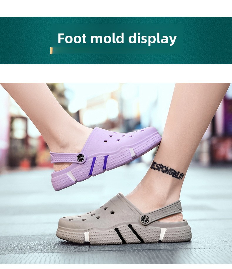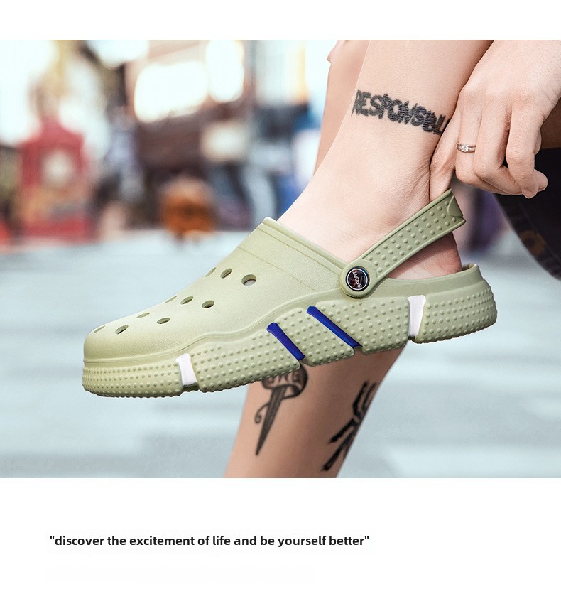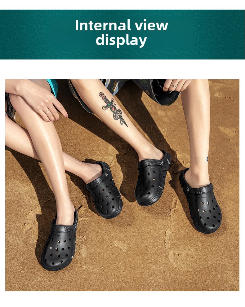 Summer Hole Shoes Men's Trend Non-slip Soft Bottom Hollow Baotou Sandals Outside Wear Thick Bottom Beach Men's Slippers